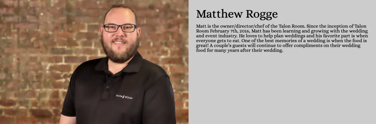 When starting down the path of owning and operating a wedding venue, there are a lot of decisions to be made and great care must be taken to be successful. There are many factors that contribute to the success of a wedding business, but one that we have considered our greatest strength has been our historic venue and location. When you chose a locally owned and operated historic venue for your wedding, you are choosing to work with someone who cares deeply about their couples and their venue. Each wedding and event brings a deeper joy and meaning to their life. Every time a couple chooses to host their wedding at the Talon Room, we find ourselves overjoyed that we found another great couple to share the limited time we have each year to host a unique wedding. With each unique couple and their family, we make new friends and new fans of what we are trying to accomplish.